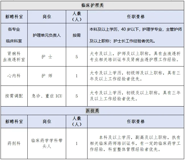 1.南華縣緊密型醫共體2024年公開招聘編制外工作人員計劃表